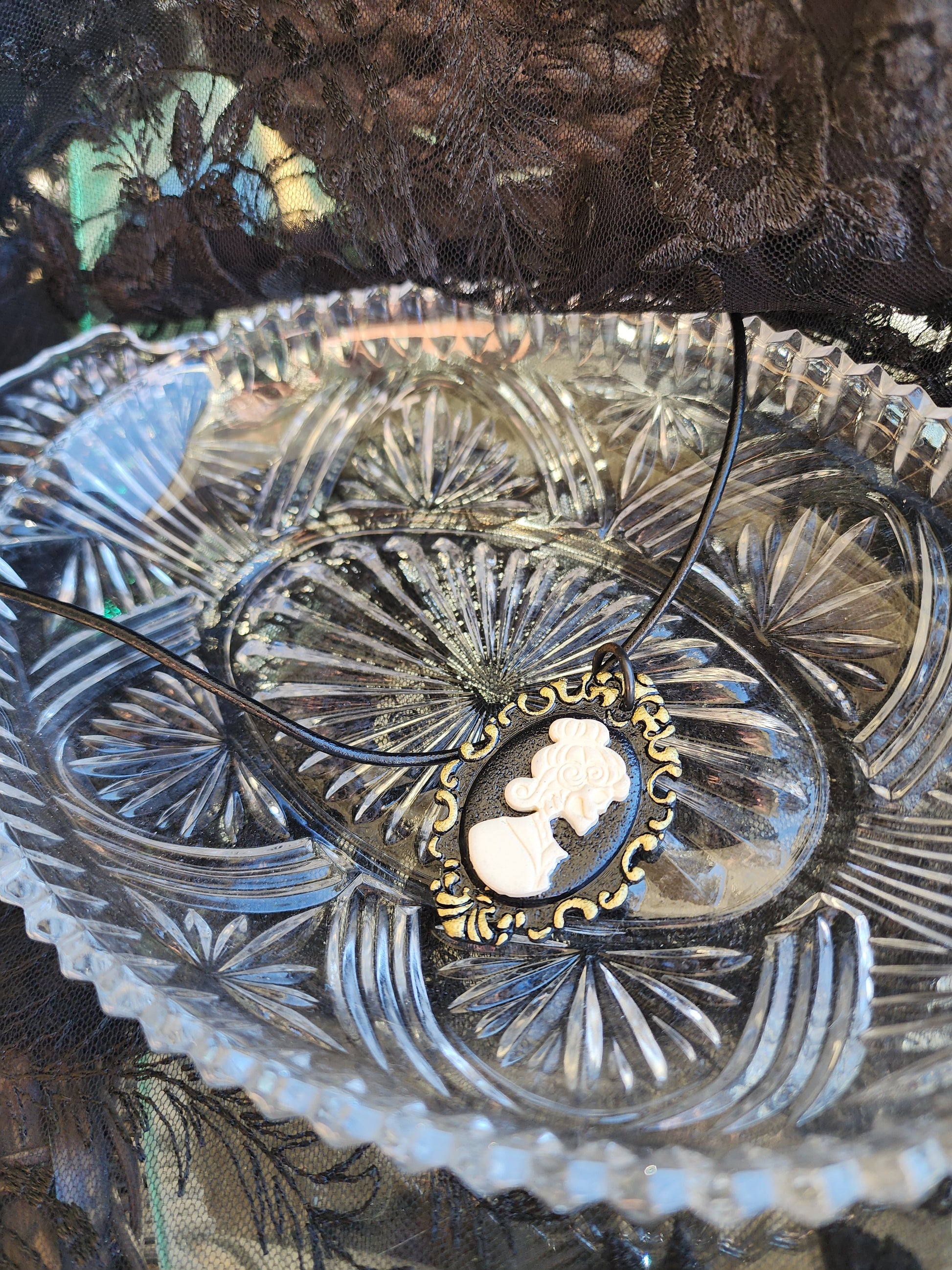 Skeletal Cameo Leather Necklace